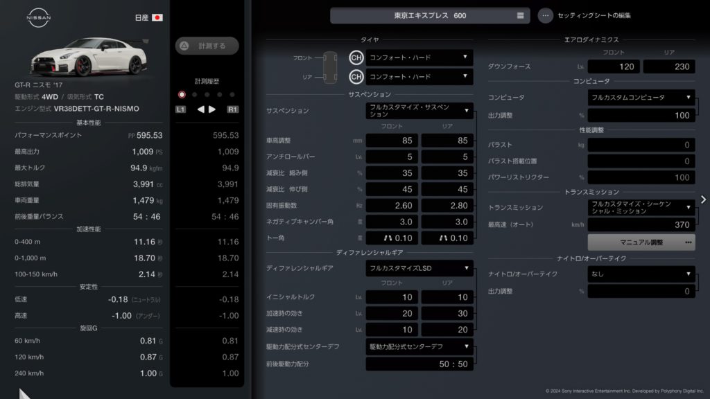 【GT7】〈PP595.53〉 GT-R ニスモ ’17 東京エキスプレスウェイ金策バージョン セッティング
